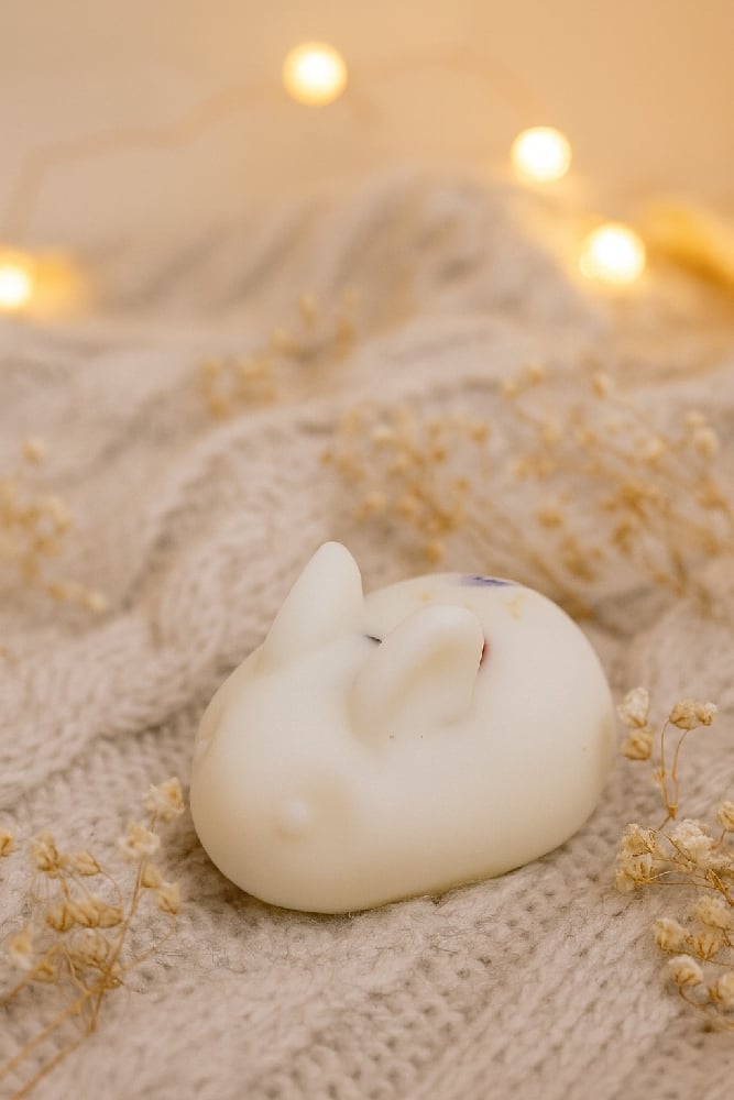 To use, cut bunny into 3 pieces.