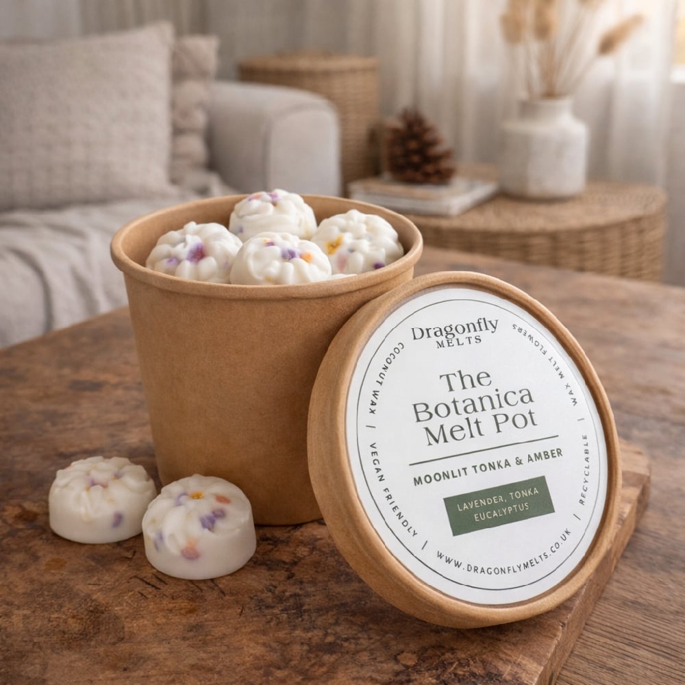 The Botanica Melt Pot includes 12 delicately crafted, flower-shaped wax melts.